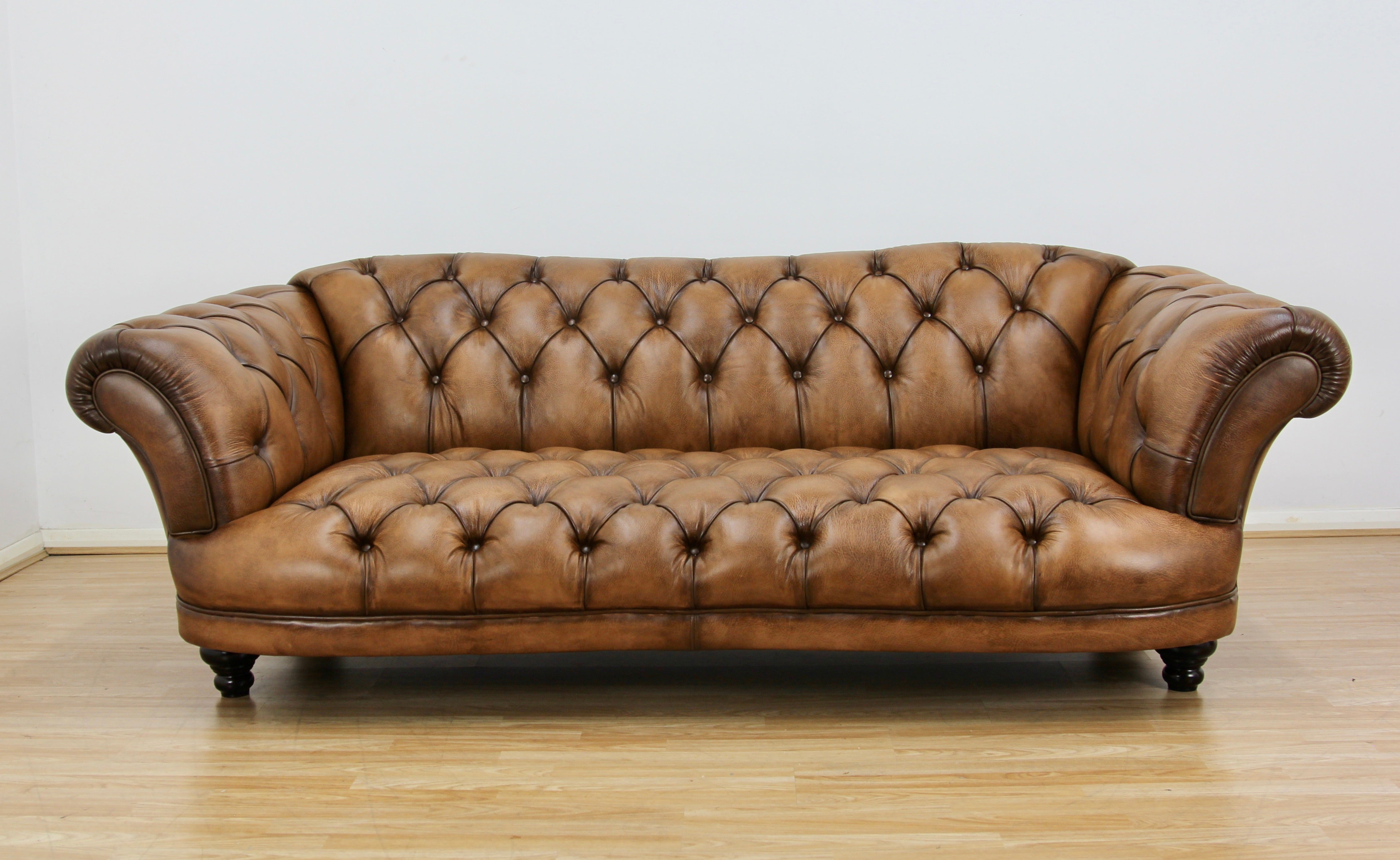 The Oskar Large Chesterfield Leather Sofa is Handmade in England and upholstered in buffalo antique leather.